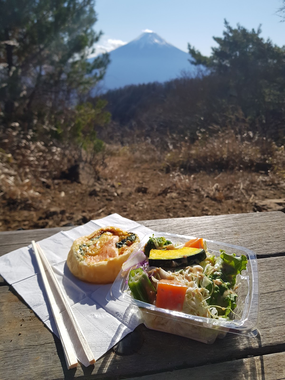 Mount Fuji uz je touhle dobou bohuzel pod snehem, takze se na ni lezt neda (jak poznamenal jeden kamarad - as if that would stop you?), takze jsem musela vymyslet nejakou jinou horu, a Mount Mitsu-Toge vypadala podle fotek idealne....asi 15km trek, kde se vyskrabete nahoru na hreben a pak po hrebenu projdete az na jeho konec, kde se pak cesta sklani dolu do udoli na druhe strane kopce, odkud je krasne videt jezero Kawaguchi. No, a celou tu dobu mate super vyhledy na Mount Fuji, coz je asi nejfotogenictejsi hora, co jsem kdy videla. Proste typicka hora, tim myslim, ze kdyz byste popisovali diteti co je hora, nakreslite presne tenhle tvar...asi i s tou snehovou cepickou nahore.
